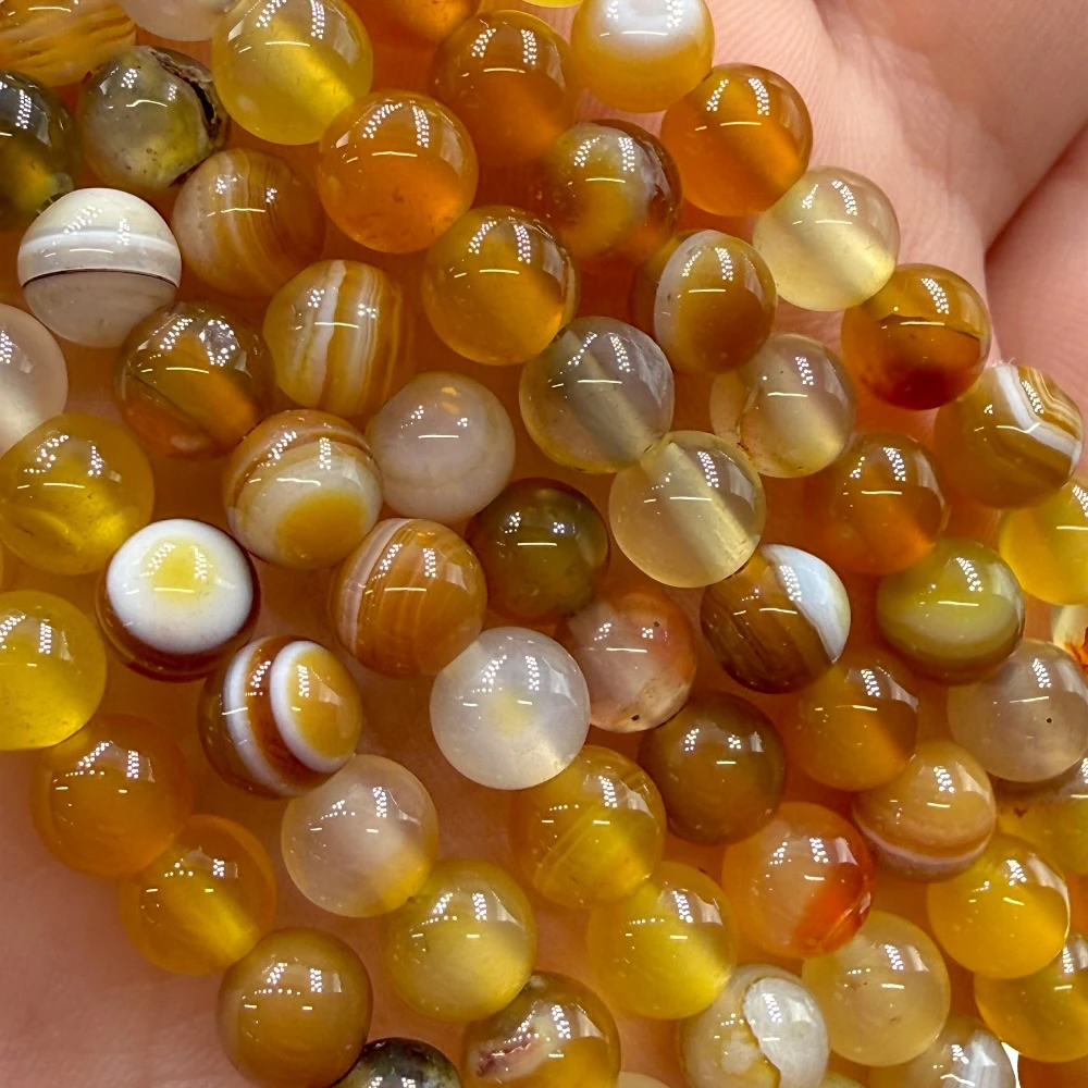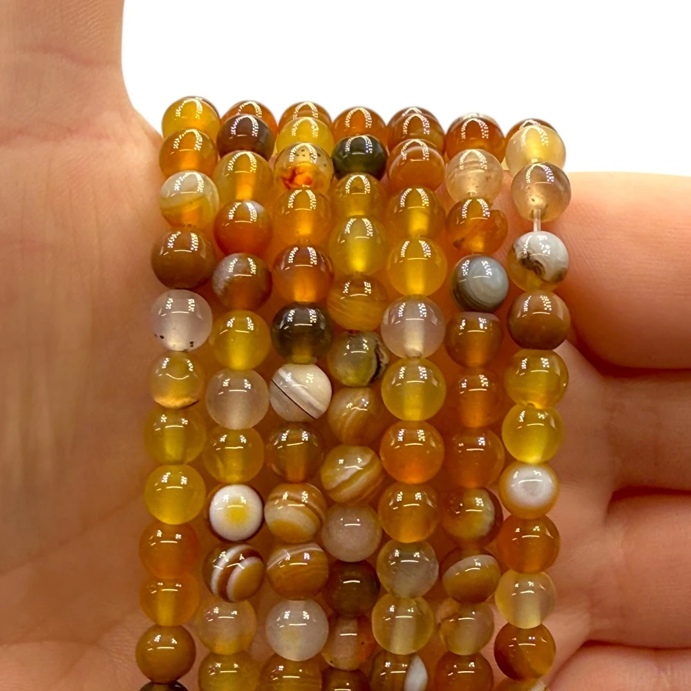 Gładkie kulki Agatu Bursztynowego o średnicy ok. 6 mm – ciepłe odcienie bursztynu i miodowego brązu, idealne do eleganckiej i naturalnej biżuterii. Doskonałe do minimalistycznych i klasycznych projektów.