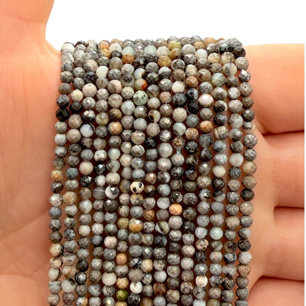 Delikatne kulki z agatu granitowego fasetowanego o średnicy ok. 3 mm – doskonałe do tworzenia subtelnej biżuterii i dodatków.