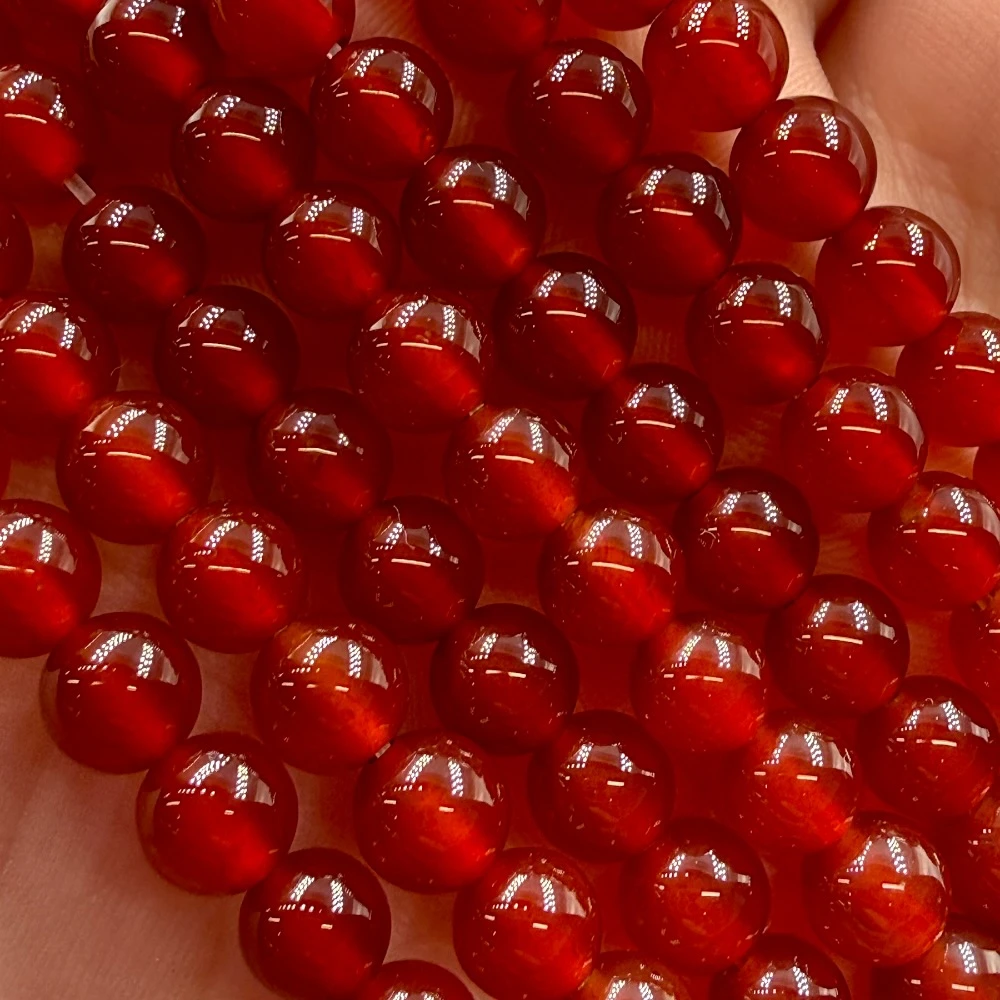 Gładkie kulki agatu karneolu o średnicy ok. 6 mm – nasycone, ciepłe odcienie pomarańczu i czerwieni, które dodają biżuterii energii i wyrazistości. Idealne do projektów dynamicznych, odważnych i pełnych koloru.