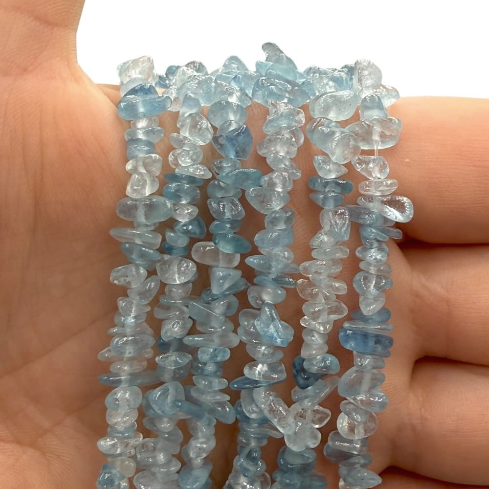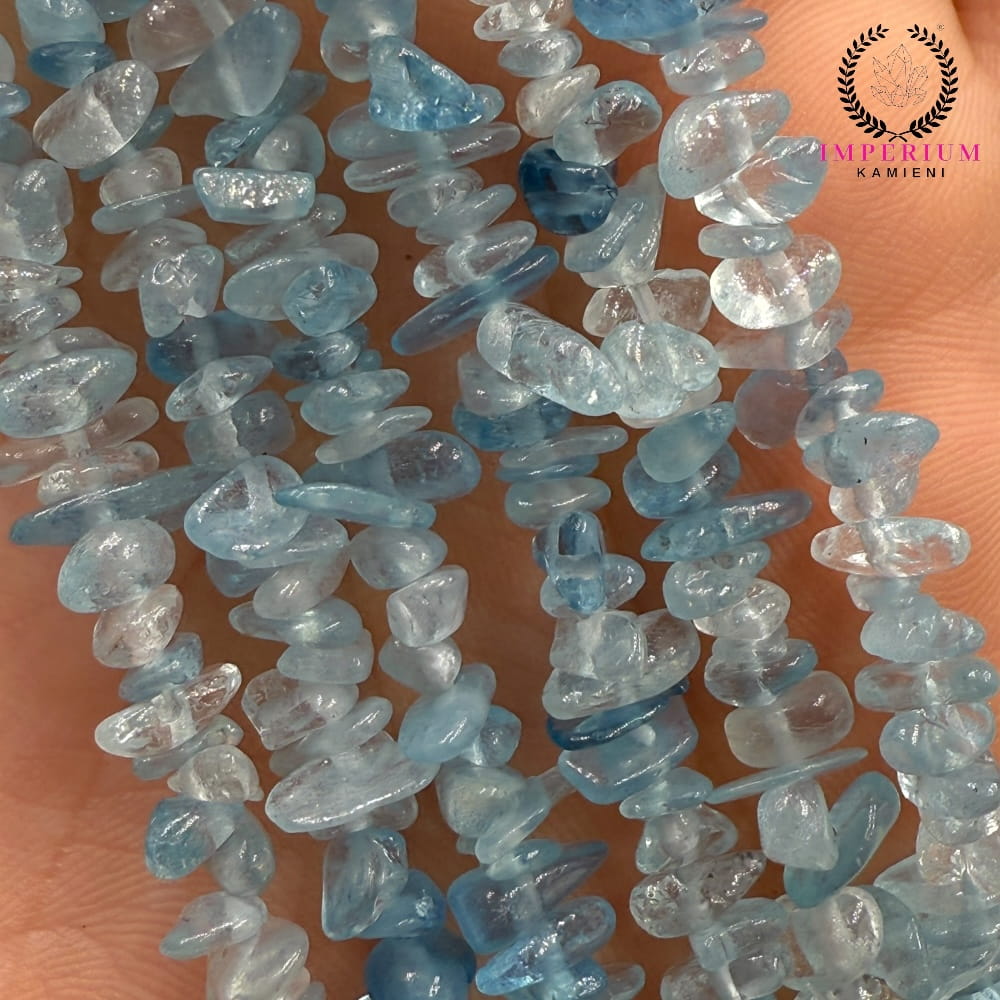 Akwamaryn to kamień o świeżej, morskiej tonacji – od jasnej mięty po subtelny błękit, symbolizujący spokój i klarowność umysłu. Gładkie pastylki o wymiarach około 3×5 mm, nawleczone na sznur długości ok. 80 cm, tworzą lekką, zwiewną kompozycję. Naturalny, przezroczysto-miętowy połysk każdej pastylki wprowadza do biżuterii nutę świeżości i elegancji. Sieczka świetnie sprawdzi się w warstwowych naszyjnikach, delikatnych bransoletkach czy romantycznych kolczykach.