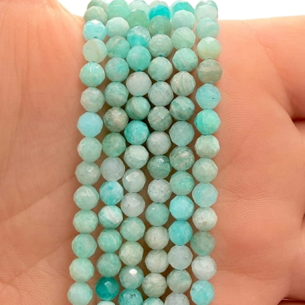 Fasetowane kulki amazonitu peruwiańskiego jasnego o średnicy ok. 6 mm – intensywne, świeże i pełne naturalnego blasku. Idealne do biżuterii pastelowej, harmonijnej i inspirowanej naturą.