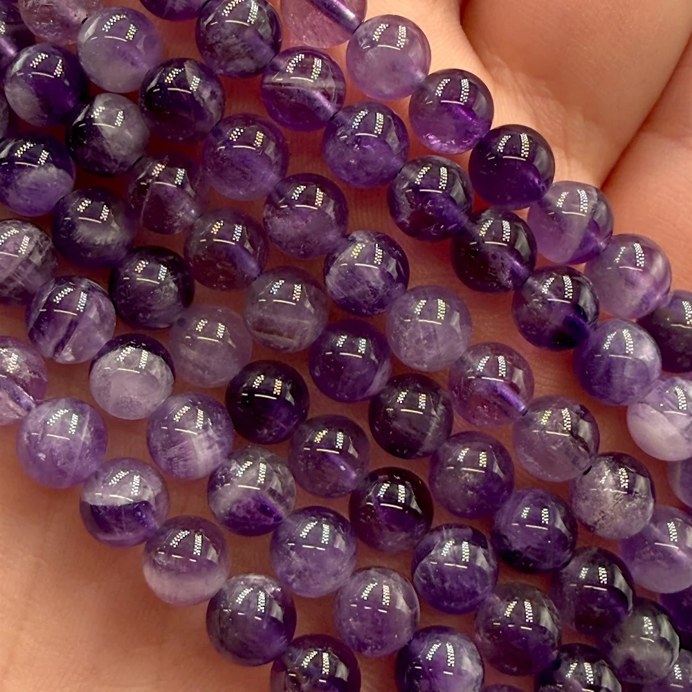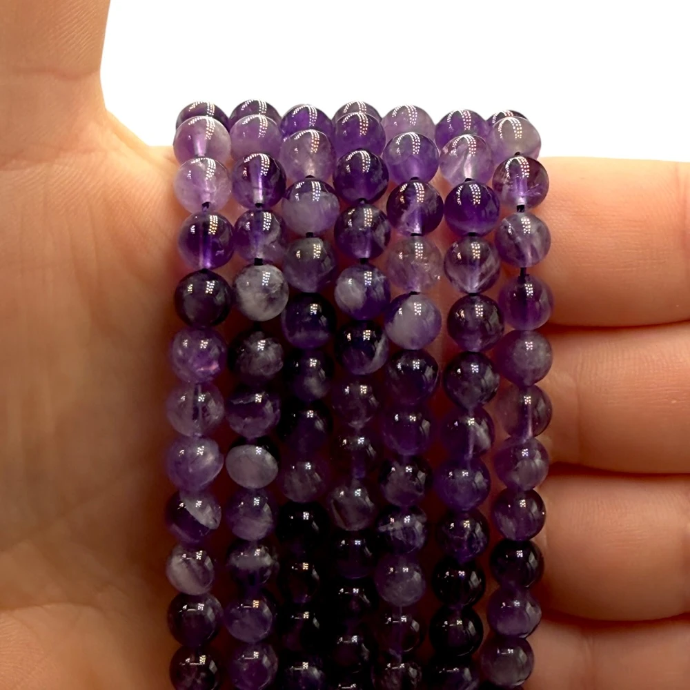 Gładkie kulki ametystu o średnicy ok. 6 mm – głęboki fiolet z naturalnym połyskiem. Idealne do biżuterii eleganckiej, mistycznej i projektów o harmonijnym, energetycznym charakterze.