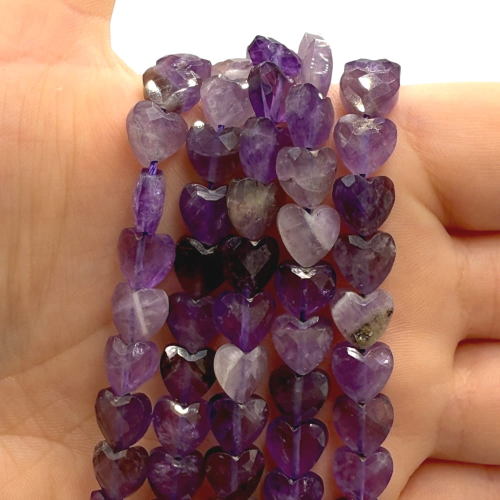 Fasetowane serduszko ametystu o wymiarze ok. 8 mm – głęboko fioletowe, delikatnie przezroczyste, z naturalnym blaskiem. Idealne do biżuterii o eleganckim, nowoczesnym charakterze oraz projektów minimalistycznych z subtelnym akcentem koloru.