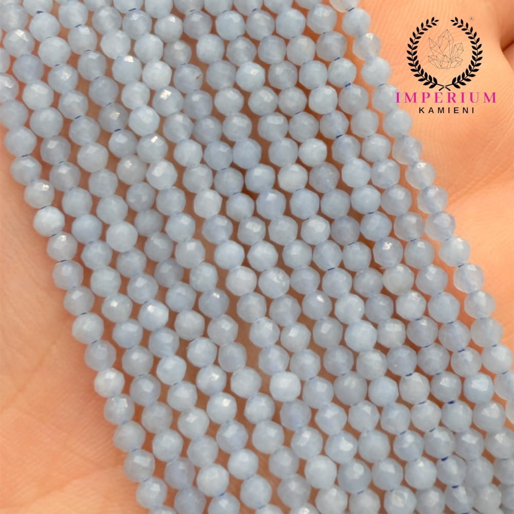 Subtelne kulki z angelitu fasetowanego o średnicy ok. 3 mm – idealne do łagodnej, niebiańskiej biżuterii.