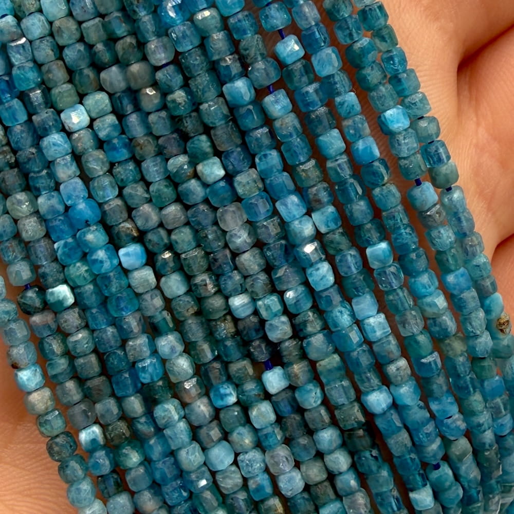 Apatyt Niebieski / kostka fasetowana / ok. 2x2mm