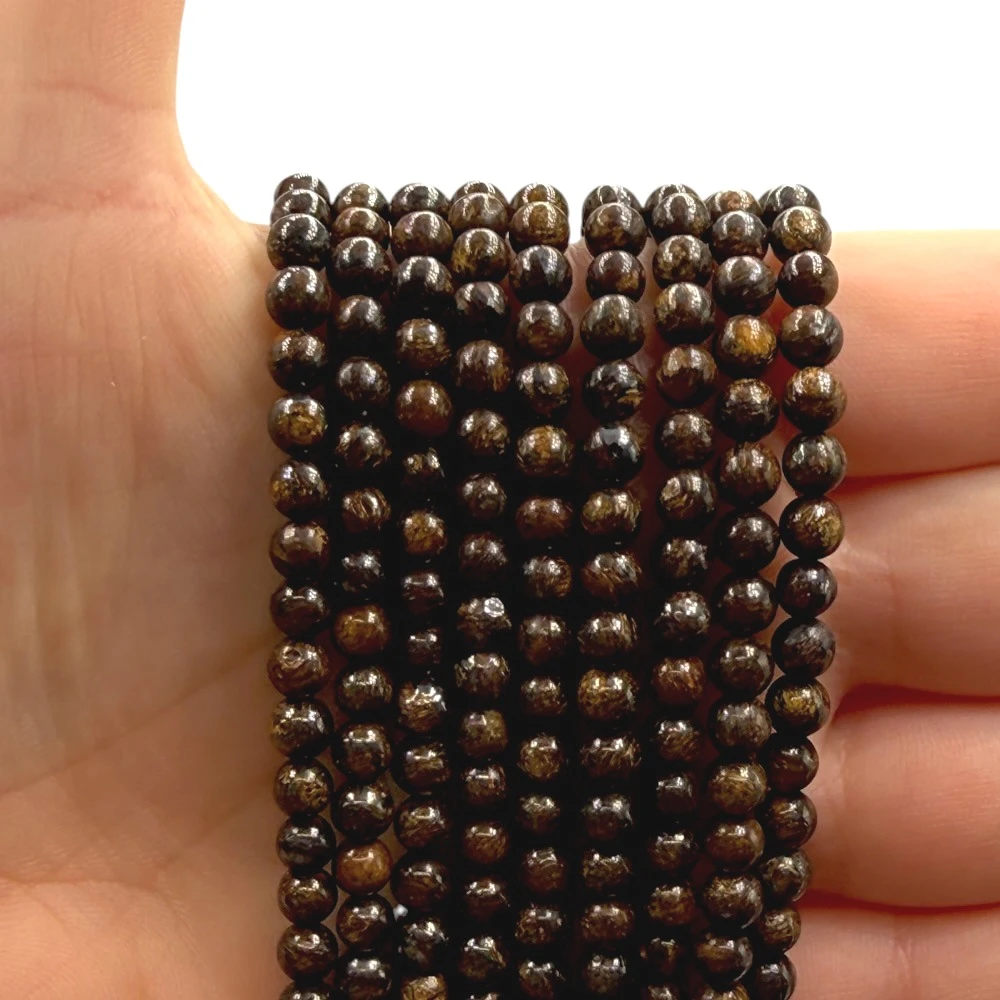 Gładkie kulki Bronzytu o średnicy ok. 4 mm – ciepły, brązowy odcień z delikatnym, złocistym połyskiem, nadający biżuterii eleganckiego i wyrazistego charakteru. Idealne do klasycznych, minimalistycznych i energetycznych projektów.
