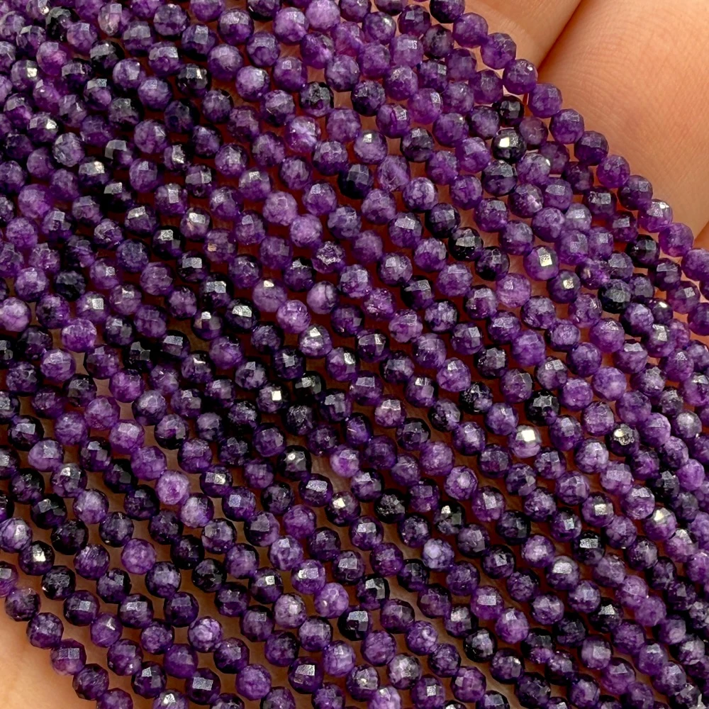 Fasetowane kulki chalcedonu w odcieniu fioletu o średnicy ok. 2 mm – subtelne, eleganckie i pełne naturalnej harmonii. Idealne do biżuterii kobiecej, delikatnej i pełnej koloru.