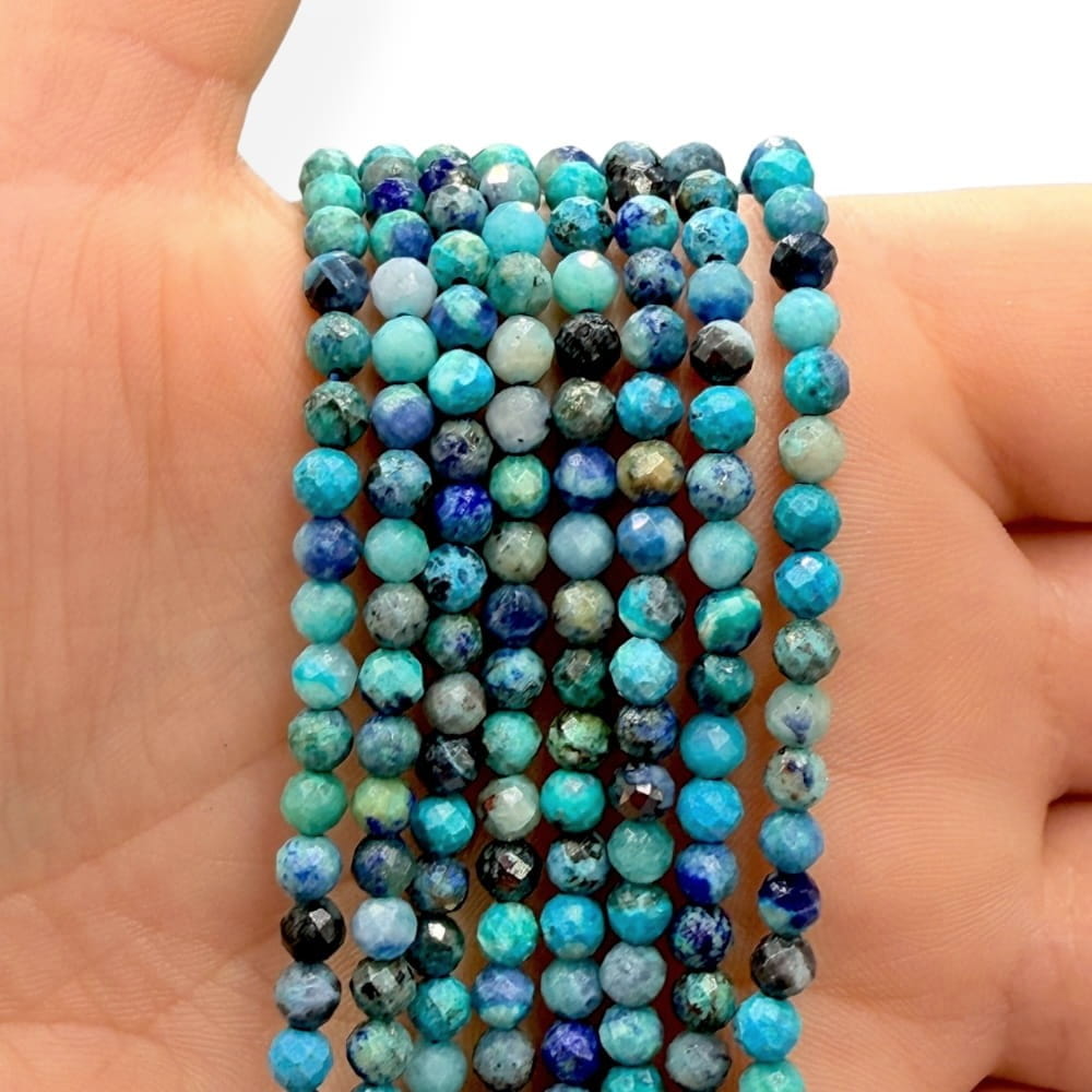 Wyraziste kulki z chryzokoli fasetowanej o średnicy ok. 4 mm – idealne do energetycznej, kolorowej biżuterii.