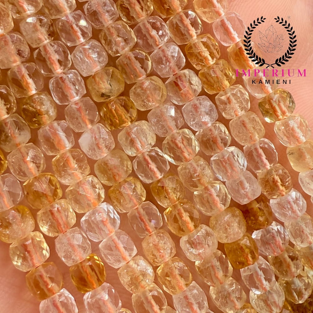 Subtelne kostki z cytrynu fasetowanego o boku ok. 4 mm – idealne do słonecznej, energetycznej biżuterii.