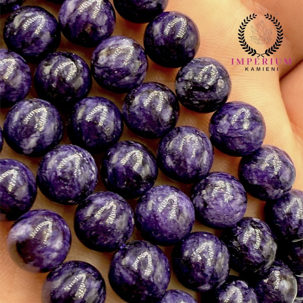 Czaroit to niezwykły kamień o głębokiej fioletowej barwie, z charakterystycznymi nieregularnymi smugami i refleksami, które nadają każdej kulce niepowtarzalny wygląd. Gładkie kulki o średnicy ok. 8 mm sprawiają wrażenie pełnych elegancji i energii, idealnie nadają się do tworzenia bransoletek, naszyjników czy projektów sutaszu i makramy. Ich intensywna barwa i naturalne wzory czynią biżuterię wyrazistą i wyjątkową.
