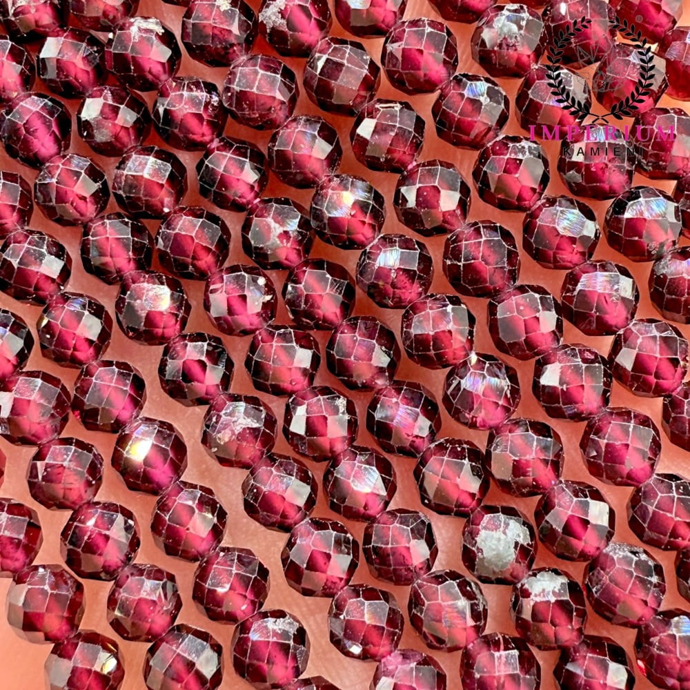 Fasetowane kulki granatu o średnicy ok. 4 mm – głębokie, bordowe i pełne szlachetnego blasku. Idealne do biżuterii eleganckiej, zmysłowej i klasycznej.