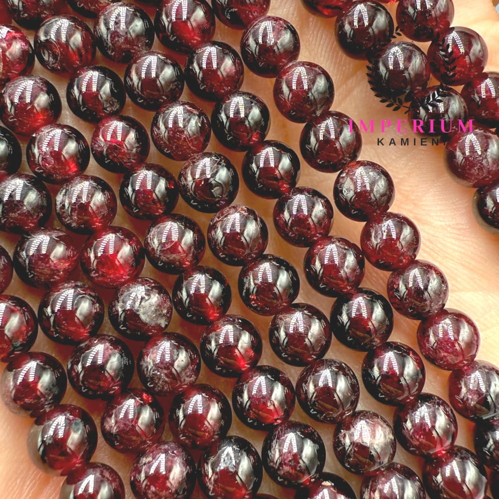 Eleganckie kulki z granatu gładkiego o średnicy ok. 6 mm – doskonałe do energetycznej, ochronnej biżuterii.