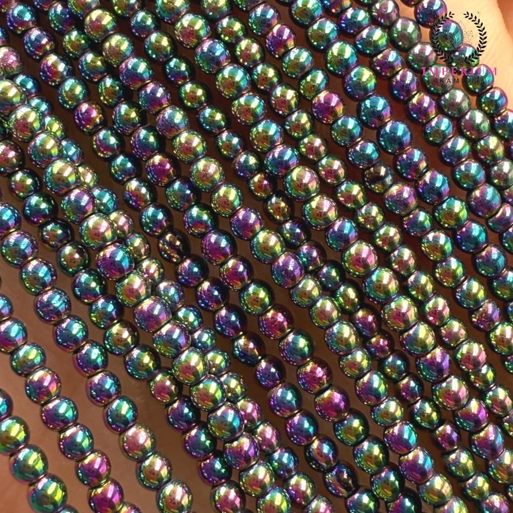 Hematyt to naturalny minerał żelaza, ceniony za swój metaliczny połysk i elegancję. W wersji barwionej na kolor „benzynka” zachwyca wielobarwnymi refleksami – od zieleni, przez fiolet, po złote tony – przypominającymi powierzchnię kropli oleju w słońcu. Kulki o średnicy ok. 2 mm doskonale nadają się do delikatnych projektów biżuterii, gdzie dodają subtelnego, ale efektownego blasku.