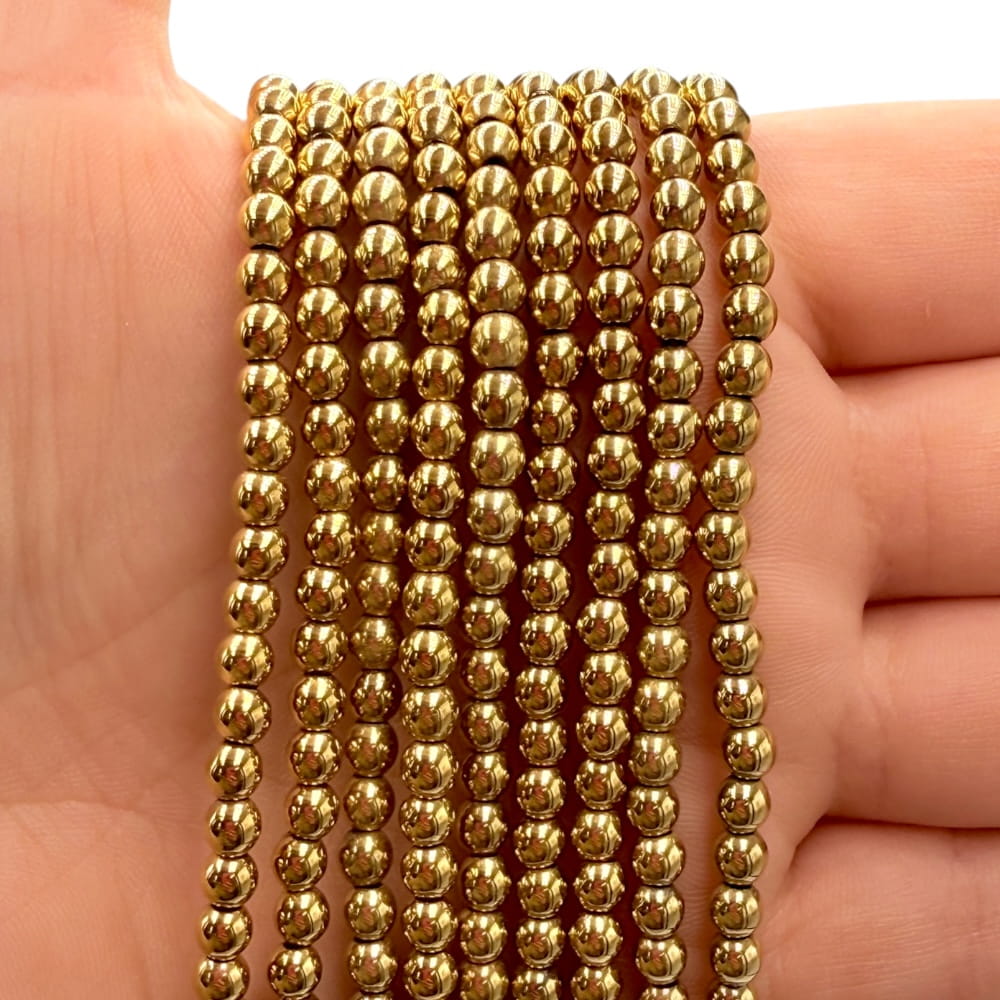 Gładkie kulki Hematytu w kolorze ciepłe złoto o średnicy ok. 3 mm – drobne, metaliczne i eleganckie, idealne do minimalistycznej i nowoczesnej biżuterii.