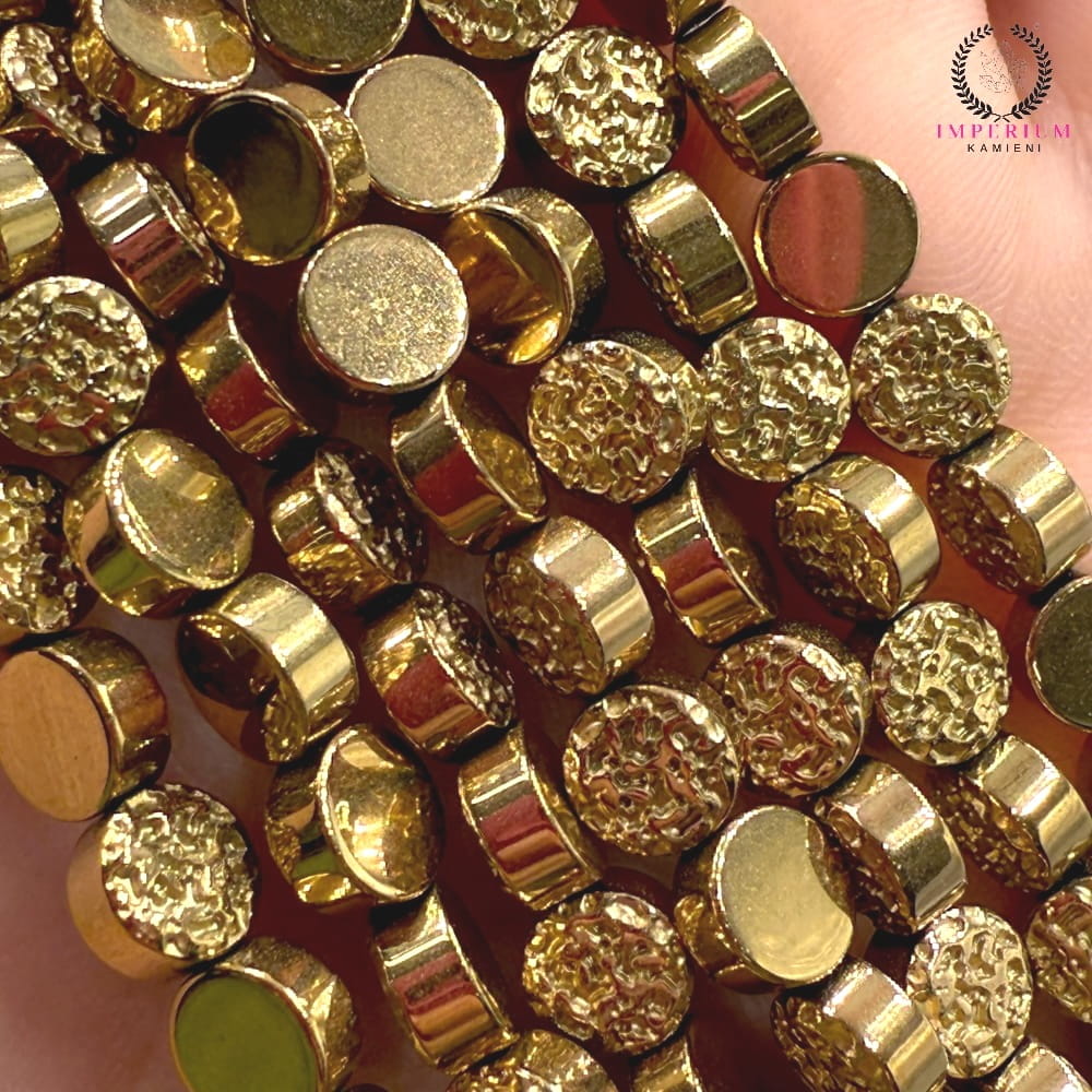 Hematyt – Koło z Teksturą, kolor ciepłe złoto, ok. 6x3 mm