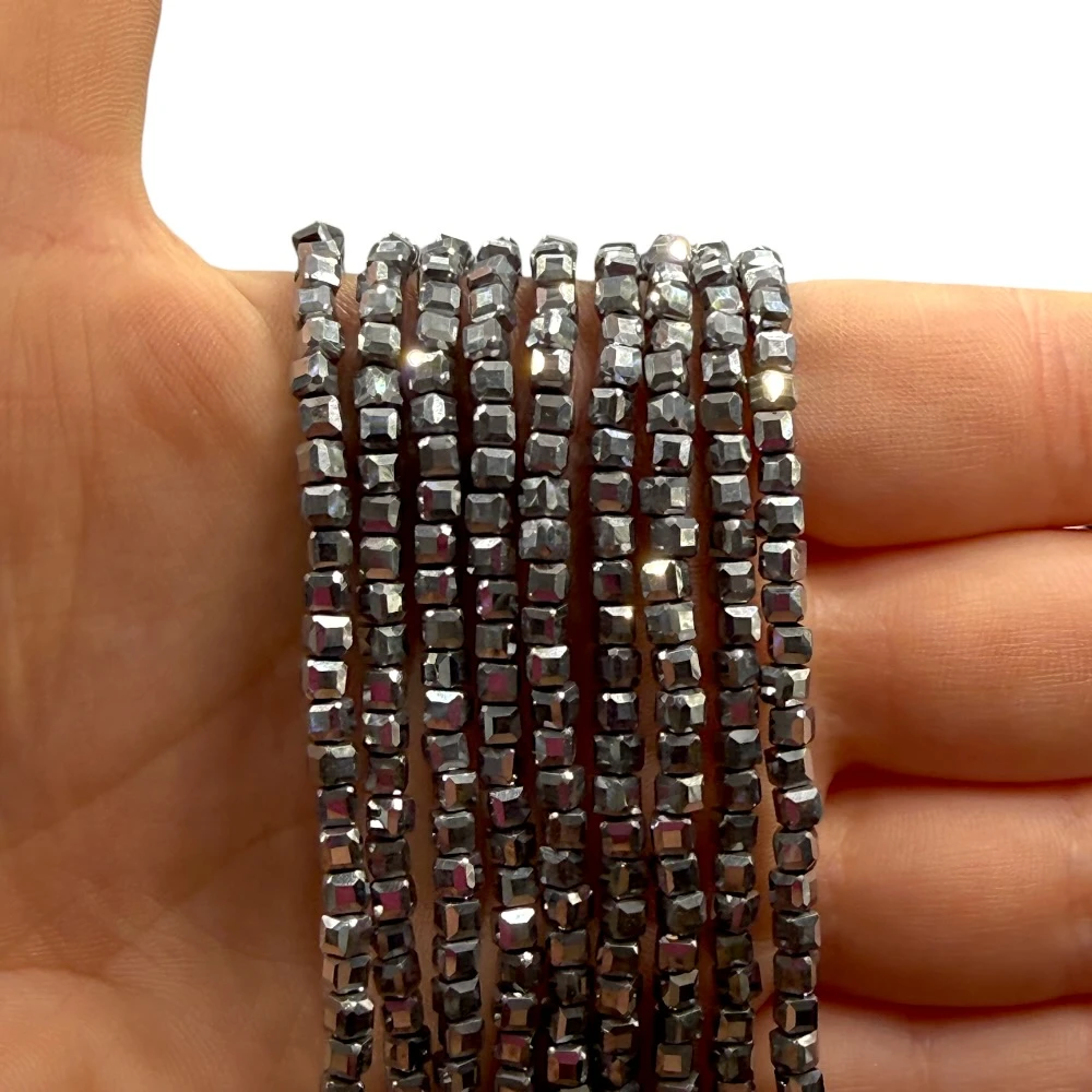 Hematyt – Kostka, kolor srebrny, ok. 3x3 mm