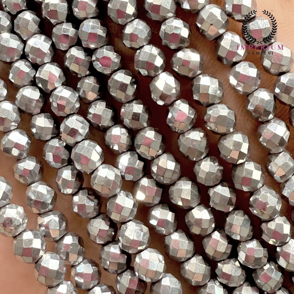 Hematyt Kulka Fasetowana – Srebrny, ok. 4 mm
