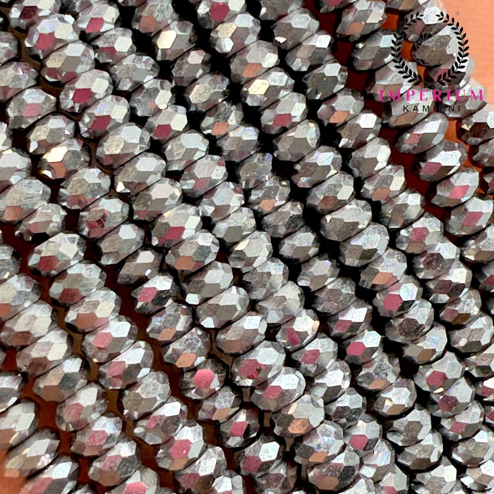 Fasetowane oponki z hematytu o wymiarach ok. 4x2 mm w kolorze srebrnym – eleganckie, błyszczące i wyjątkowo trwałe. Idealne jako dekoracyjne przekładki lub główny akcent w nowoczesnej biżuterii.