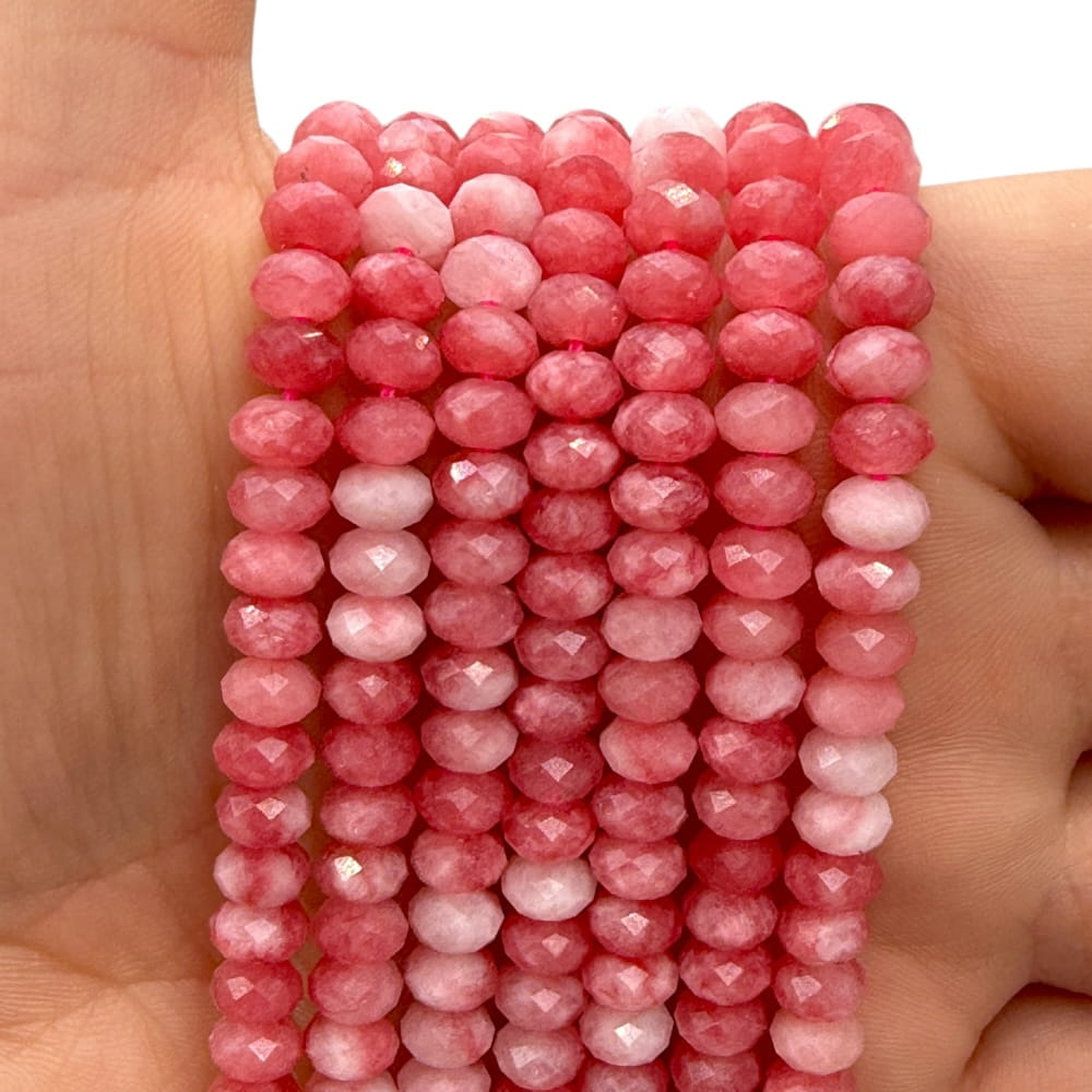 Fasetowane oponki jadeitu różowego o wymiarach ok. 6 × 4 mm – delikatne, kobiece odcienie różu w subtelnym, eleganckim wydaniu. Idealne do romantycznej, minimalistycznej biżuterii oraz projektów o lekkim, harmonijnym charakterze.