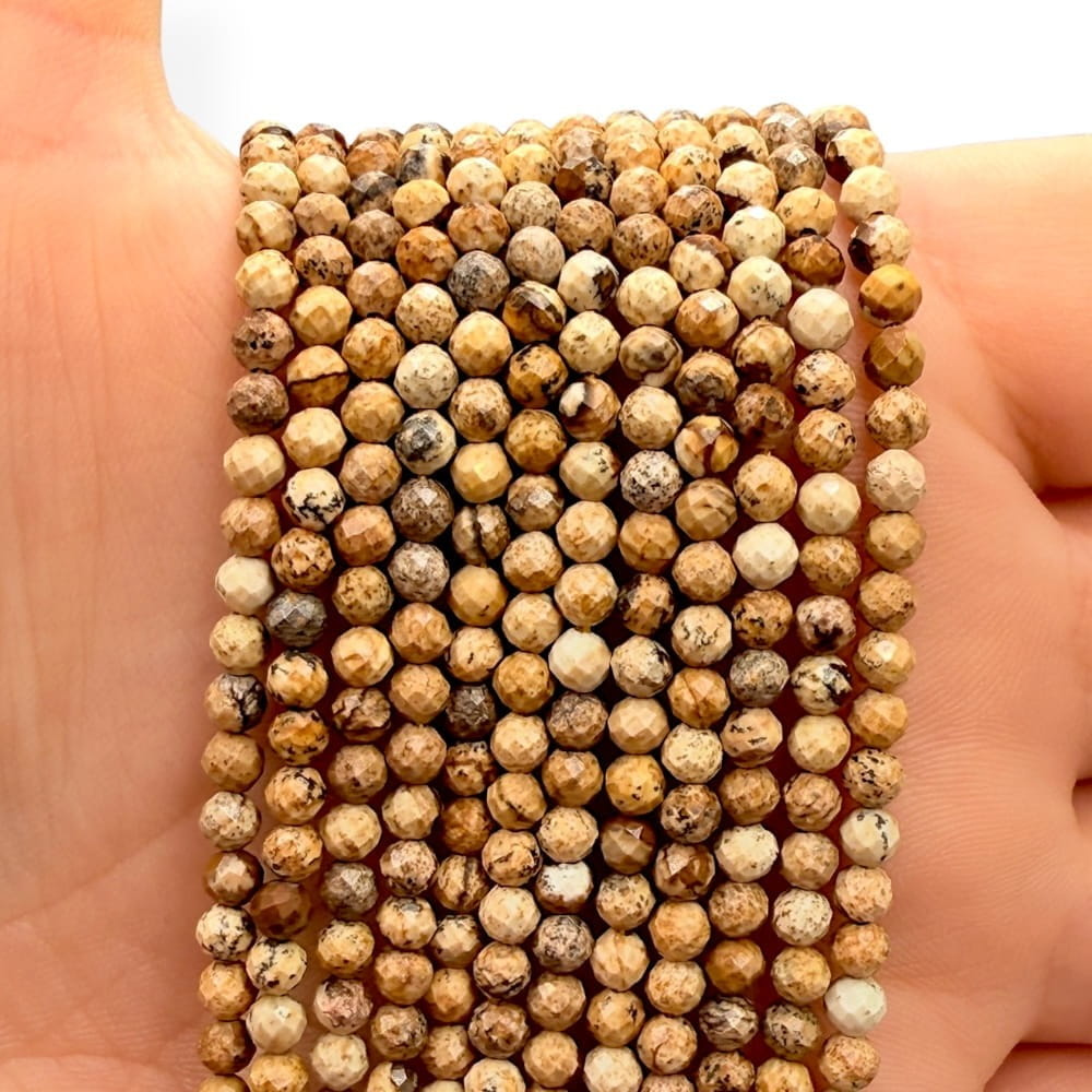 Subtelne kulki z jaspisu piaskowego fasetowanego o średnicy ok. 3 mm – idealne do naturalnej, stonowanej biżuterii.