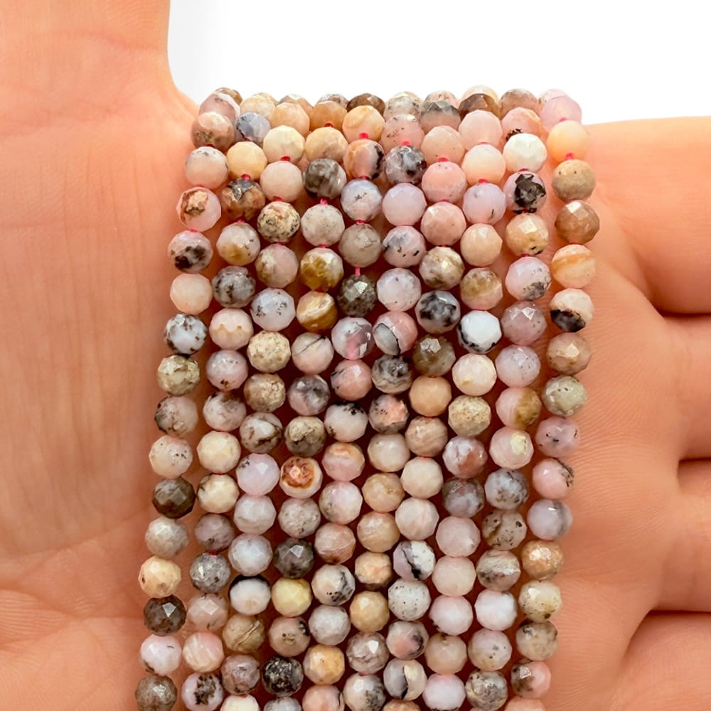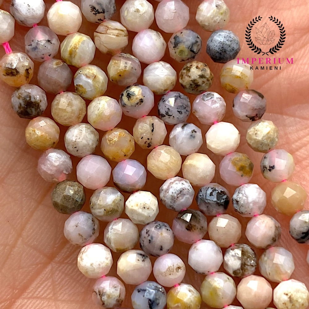 Fasetowane kulki jaspisu bambusowego o średnicy ok. 4 mm – naturalne odcienie zieleni, brązu i kremu, z subtelnym połyskiem. Idealne do biżuterii eleganckiej, naturalnej i energetycznie wyważonej.