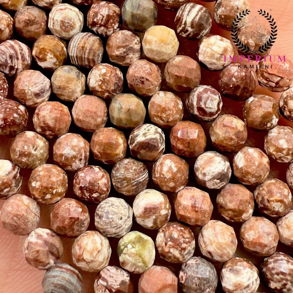 Jaspis leopard to kamień o ciepłych, ziemistych barwach z charakterystycznymi ciemnymi inkluzjami przypominającymi wzór cętek, symbolizujący stabilność, ochronę i wytrwałość. Fasetowane kulki o średnicy ok. 4 mm subtelnie odbijają światło, podkreślając naturalny blask i unikalną strukturę kamienia. Każda kulka jest wyjątkowa dzięki naturalnym inkluzjom, co sprawia, że każdy sznur jest jedyny w swoim rodzaju.