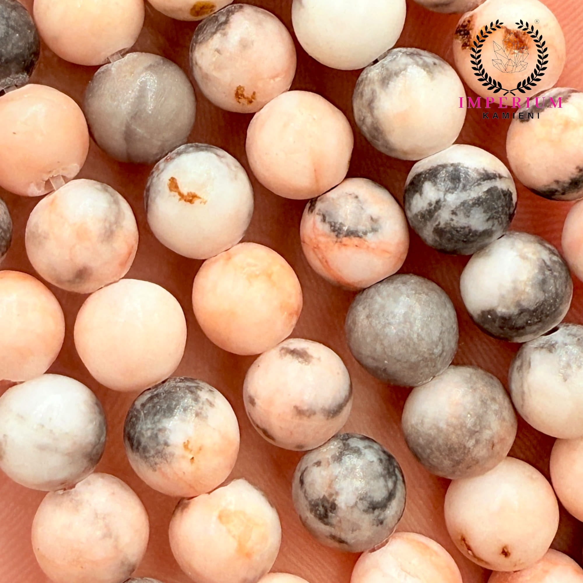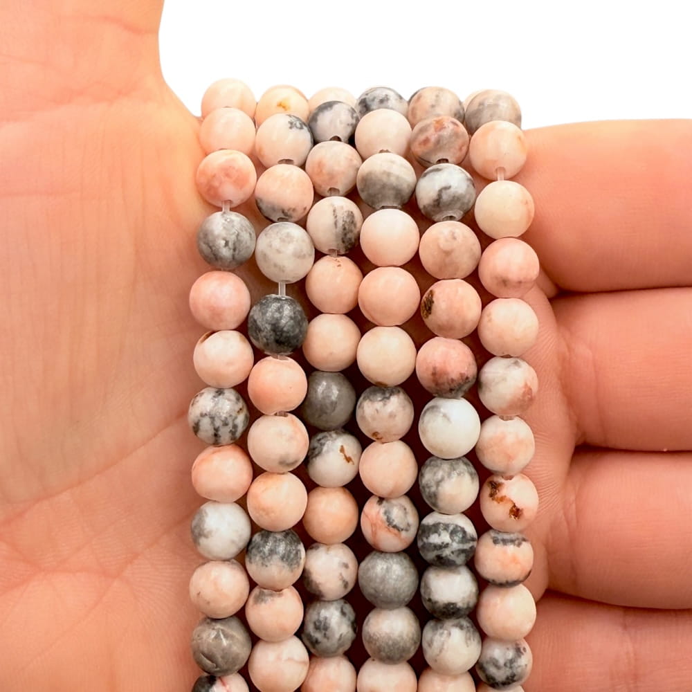 Jaspis zebra to kamień o charakterystycznym, kontrastowym wyglądzie – jego powierzchnię zdobią naprzemienne pasma bieli, kremu i czerni, przypominające umaszczenie zebry. W formie gładkich kul o średnicy ok. 5 mm prezentuje się subtelnie, ale wyrazisty wzór sprawia, że każdy element biżuterii nabiera niepowtarzalnego charakteru.