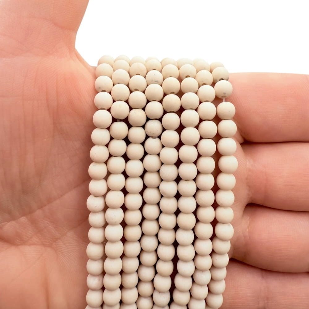 Matowe, gładkie kulki kamienia rzecznego o średnicy ok. 4 mm – naturalne, stonowane i pełne ziemistych odcieni. Idealne do biżuterii minimalistycznej, organicznej i inspirowanej naturą.