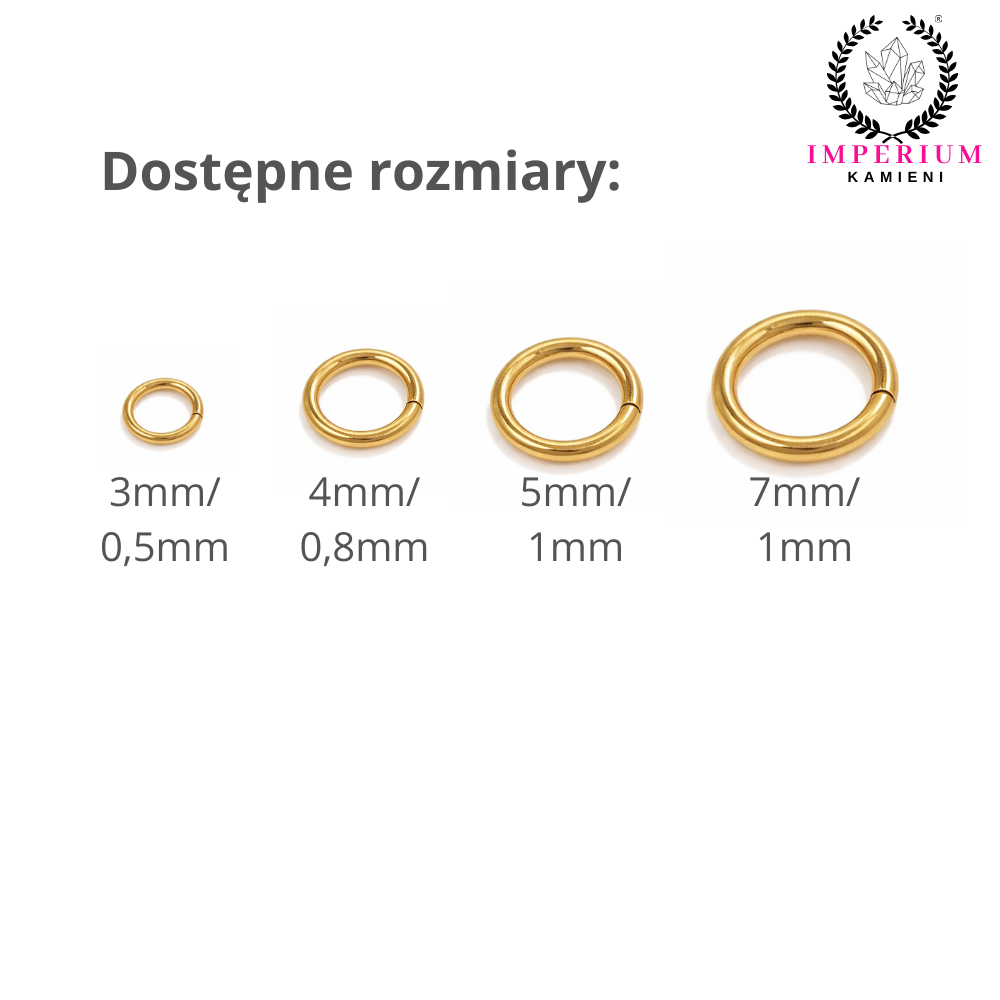Kółeczka zaciskowe otwarte wykonane z wysokogatunkowej stali nierdzewnej pokrytej powłoką PVD w ciepłym odcieniu złota to podstawowe komponenty jubilerskie wykorzystywane do łączenia elementów biżuterii. Otwarta konstrukcja umożliwia precyzyjne i bezpieczne łączenie zawieszek, zapięć, baz kolczyków oraz innych elementów dekoracyjnych.