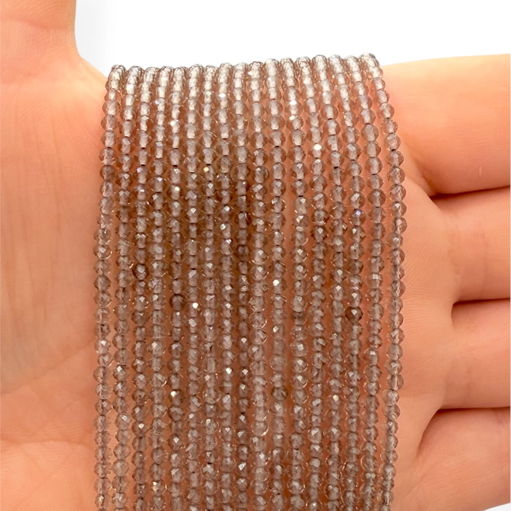 Fasetowane kulki kwarcu dymnego o średnicy ok. 2 mm – subtelne brązowe przejścia z delikatnym połyskiem. Idealne do biżuterii minimalistycznej, eleganckiej i projektów o energetycznym, ochronnym charakterze.