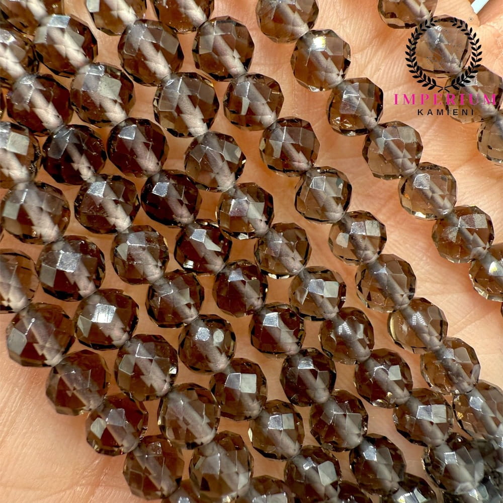 Fasetowane kulki Kwarcu Dymnego o średnicy ok. 6 mm – ciepły, dymny odcień z subtelnym połyskiem faset. Idealne do eleganckiej, minimalistycznej i energetycznej biżuterii.