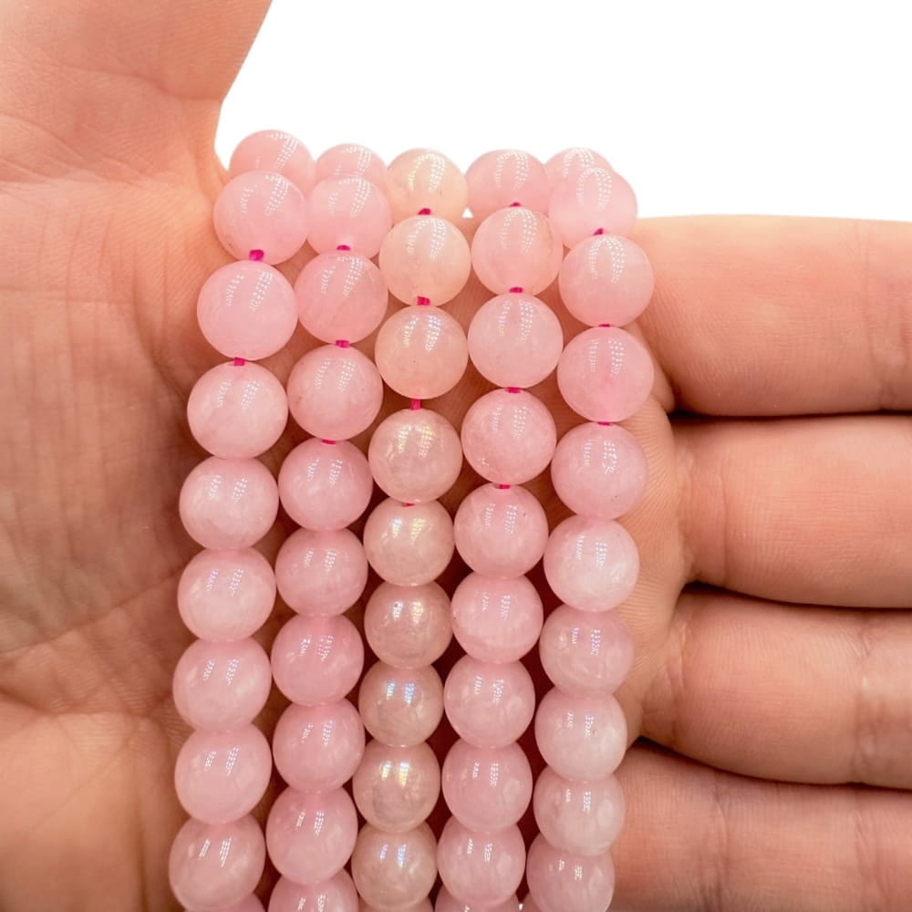 Kwarc Różowy – kulka gładka o średnicy ok. 8 mm – kulki w delikatnym, różowym odcieniu, gładkie i subtelnie połyskujące. Idealne do biżuterii romantycznej, eleganckiej i projektów handmade o łagodnym, kobiecym charakterze.