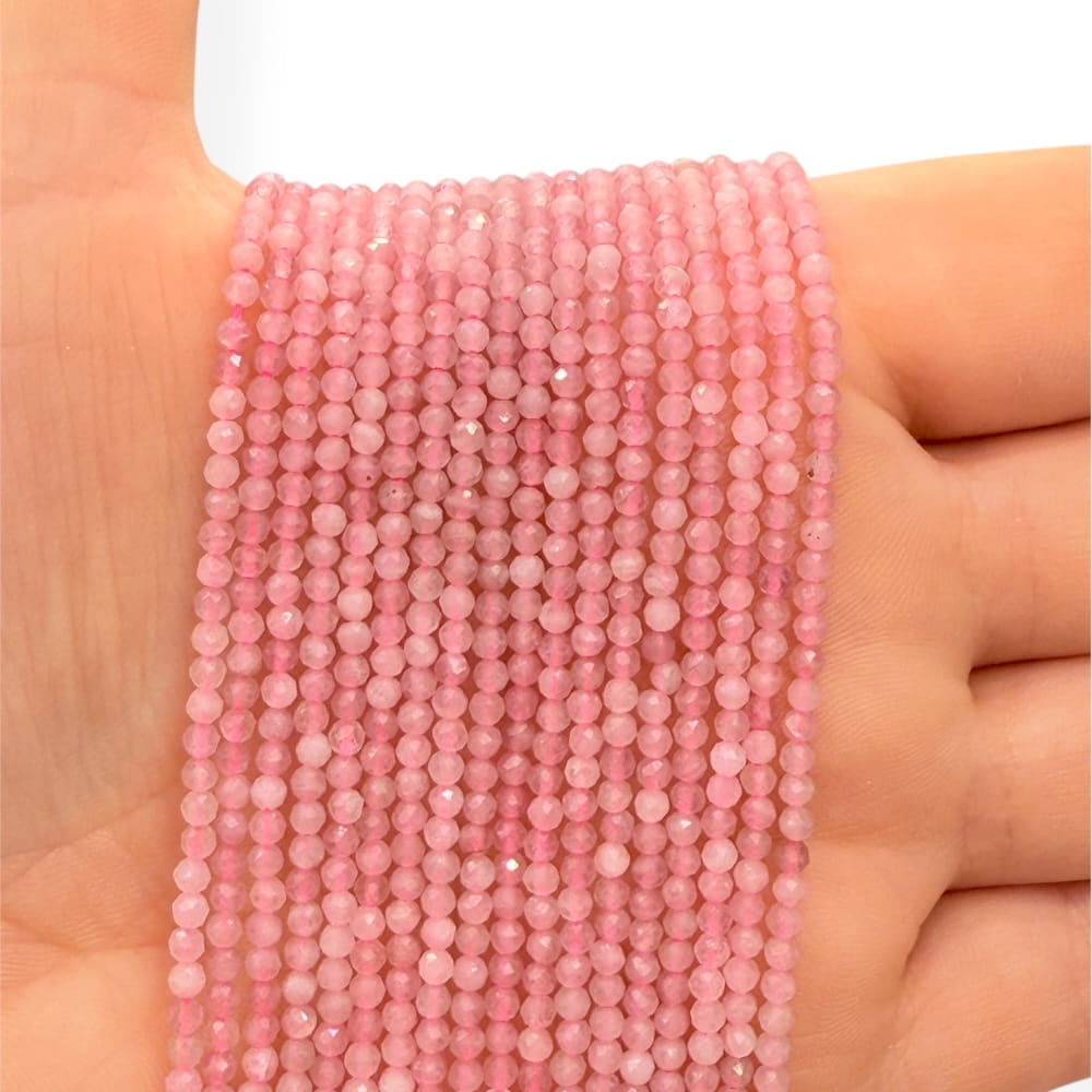 Delikatne kulki z madagaskarskiego kwarcu różowego fasetowanego o średnicy ok. 2 mm – idealne do romantycznej, subtelnej biżuterii.