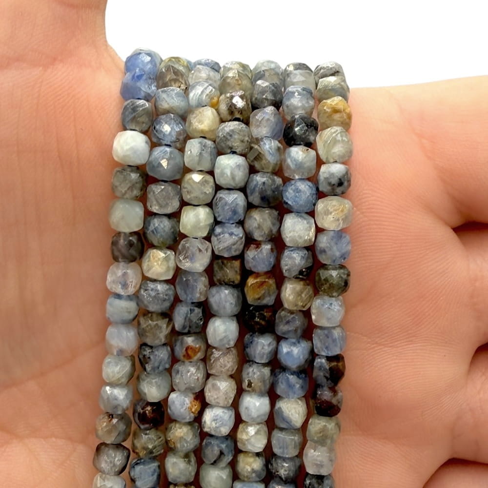 Fasetowane kostki z kyanitu, ok. 4×4 mm – intensywny, niebieski odcień i naturalny połysk wyjątkowego minerału.
