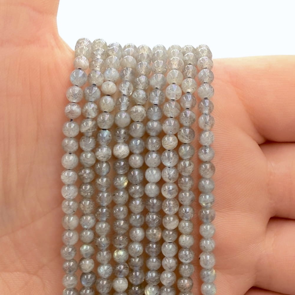 Mistyczne kulki z labradorytu gładkiego o średnicy ok. 4 mm – idealne do energetycznej, pełnej magii biżuterii.