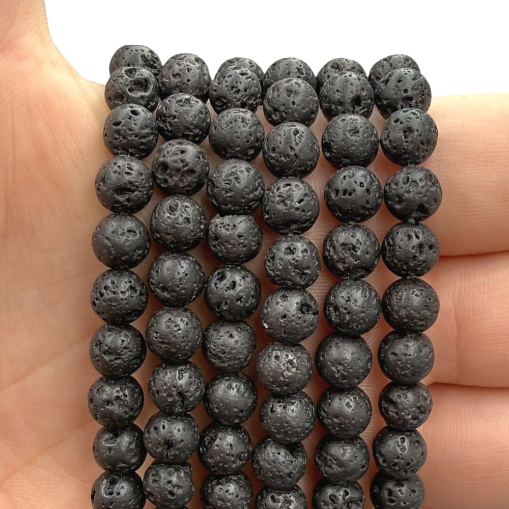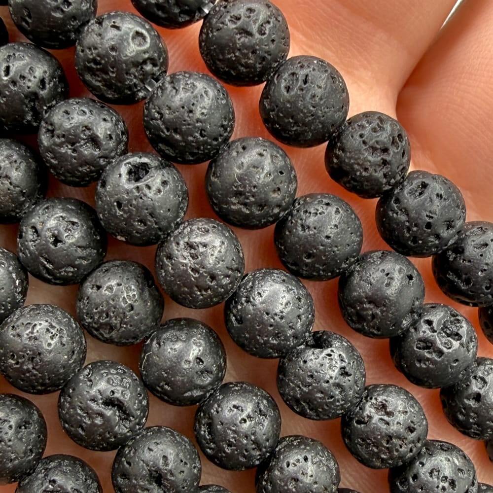 Lawa wulkaniczna to kamień powstały ze stygnącej magmy, niosący w sobie potęgę ziemskich żywiołów. Dzięki swojej porowatej strukturze i matowej czerni prezentuje się niezwykle naturalnie i surowo, a w formie gładkich kul o średnicy ok. 6 mm stanowi wyjątkowy element w projektach biżuteryjnych. Doskonała zarówno jako samodzielny akcent, jak i w połączeniu z innymi minerałami.