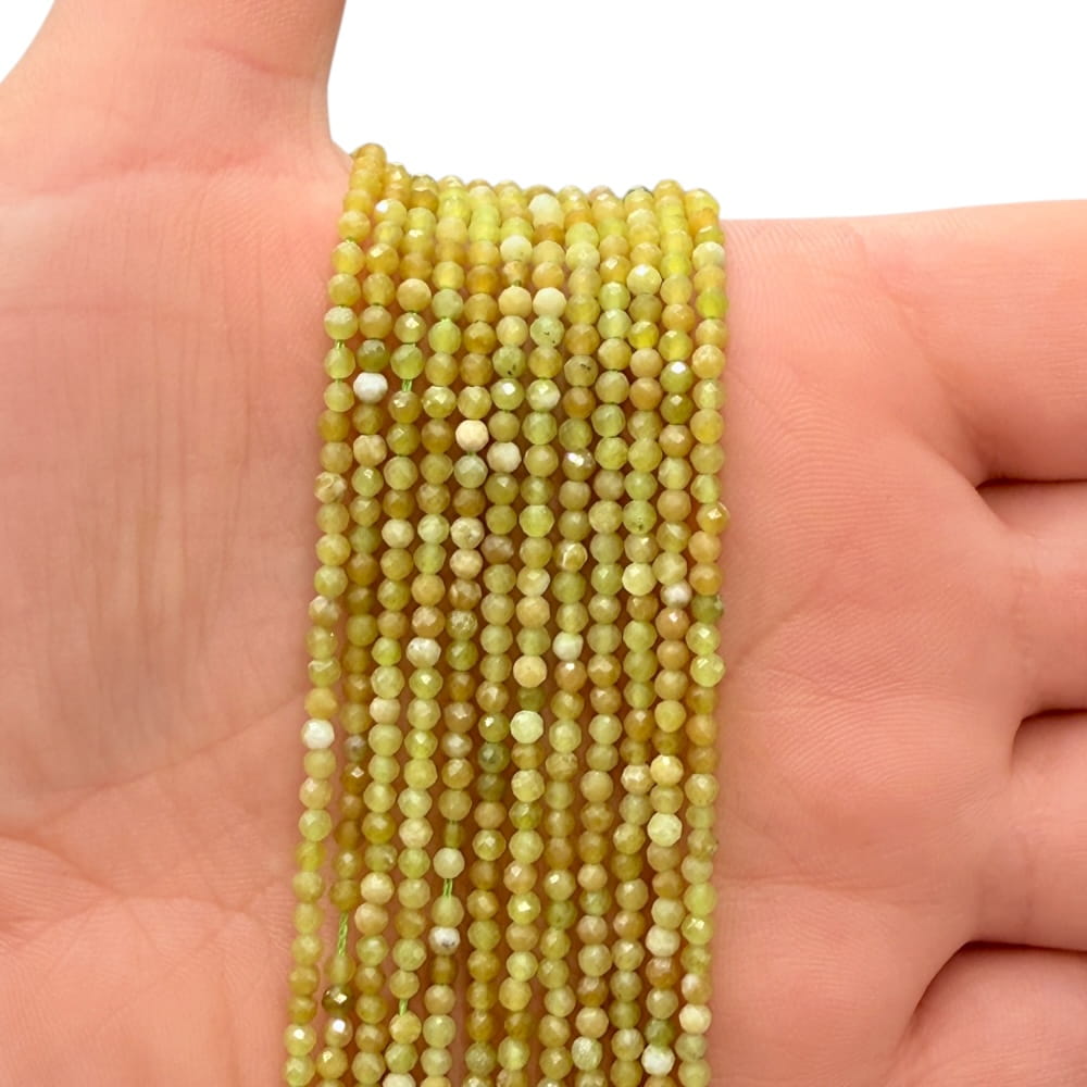 Nefryt – kulka fasetowana o średnicy ok. 2 mm – subtelny zielony kamień z delikatnym połyskiem, idealny do drobnej i eleganckiej biżuterii.