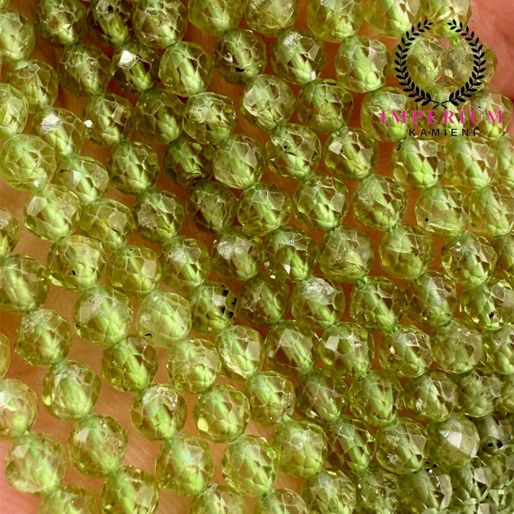 Fasetowane kulki Oliwinu o średnicy ok. 4 mm – intensywny, zielony kolor z naturalnym połyskiem nadaje biżuterii elegancki, energetyczny i świeży charakter. Idealne do minimalistycznych projektów oraz wyrazistych akcentów kolorystycznych.