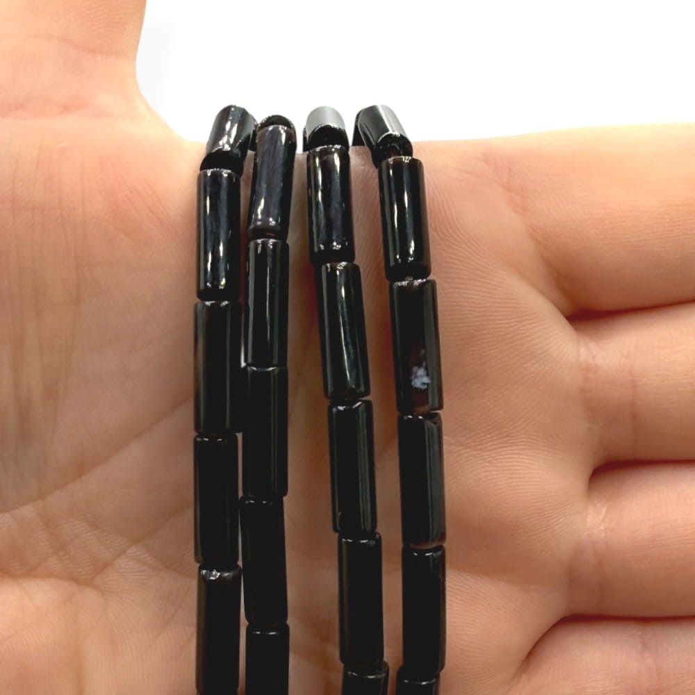 Walce Onyksu o wymiarach ok. 4x13 mm – głęboka, klasyczna czerń z naturalnym połyskiem nadaje biżuterii elegancki, wyrazisty i ponadczasowy charakter. Idealne do minimalistycznych projektów i wyrazistych akcentów.