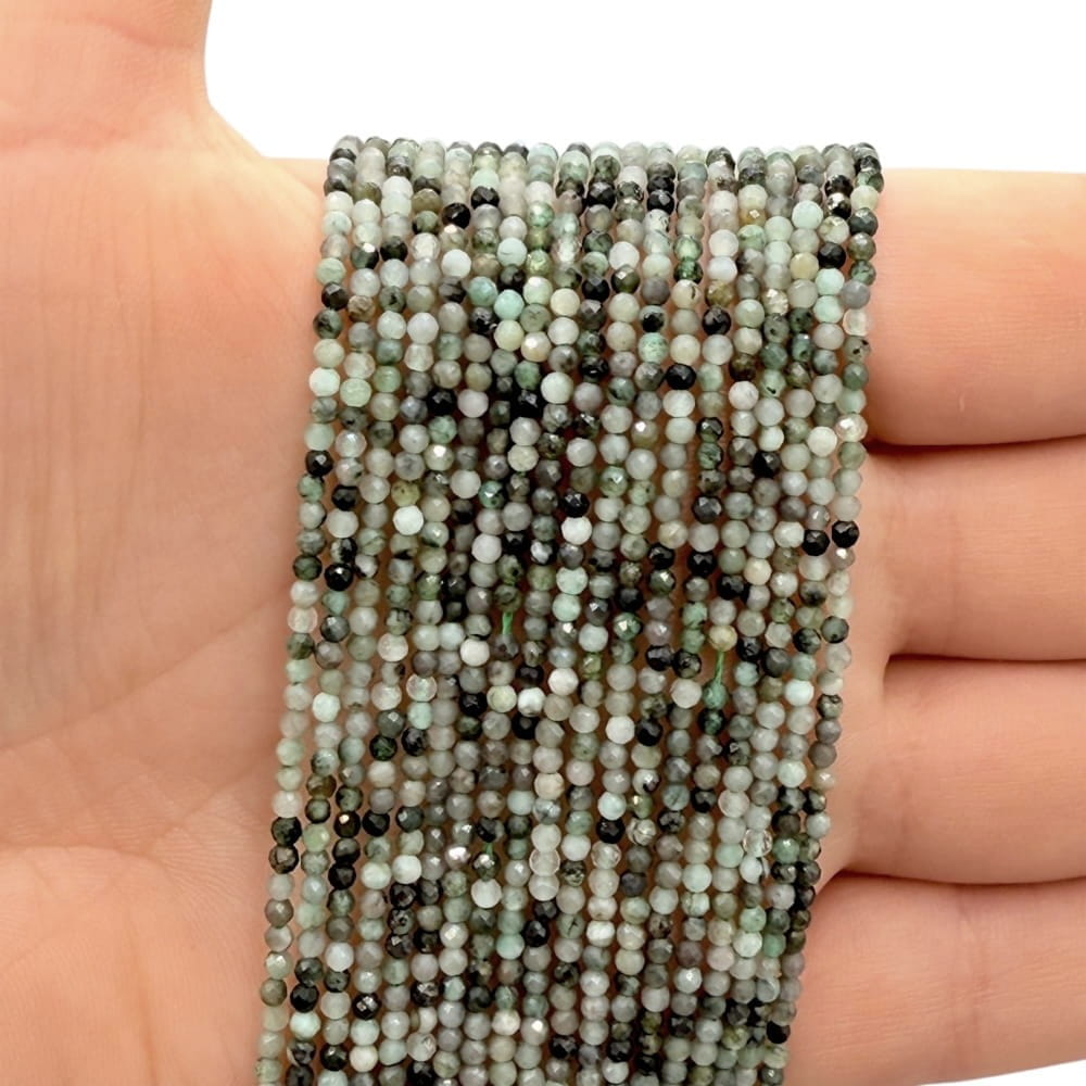 Fasetowane kulki szmaragdu o średnicy ok. 2 mm – drobne, eleganckie kamienie o intensywnej zielonej barwie z naturalnymi inkluzjami, podkreślającymi ich autentyczny i szlachetny charakter. Idealne do bardzo delikatnej, precyzyjnej biżuterii oraz projektów o luksusowym wykończeniu.