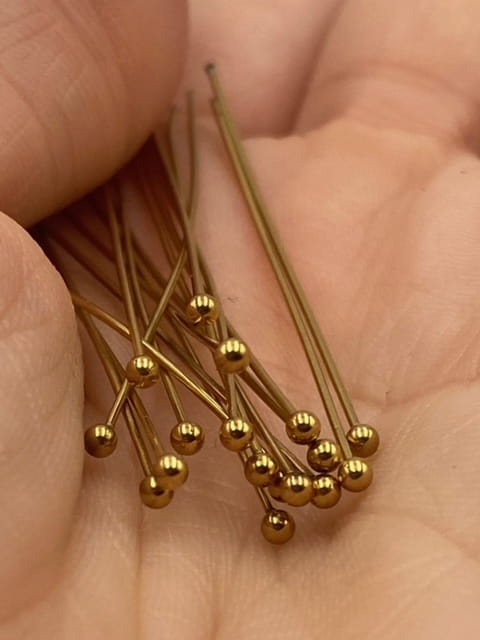 Szpilki jubilerskie ze stali nierdzewnej PVD w kolorze złotym o długości 5 cm – trwałe i precyzyjne elementy montażowe do tworzenia zawieszek i elementów biżuterii.