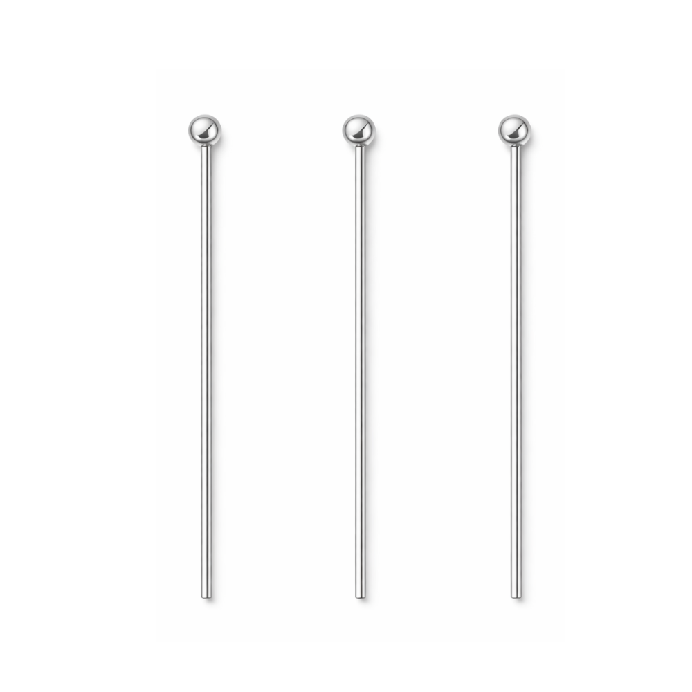 Szpilki jubilerskie ze stali nierdzewnej w kolorze srebrnym o długości 5 cm – trwałe, precyzyjnie wykonane i odporne na korozję. Idealne do tworzenia zawieszek, łączników oraz elementów montażowych w biżuterii handmade.