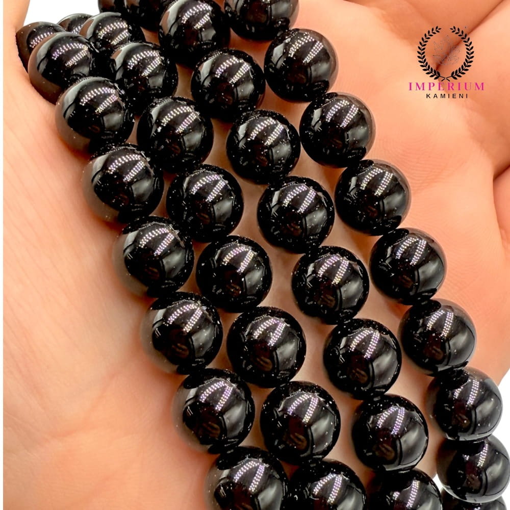 Kule gładkie z czarnego turmalinu, ok. 6 mm – potężny kamień ochronny, symbol siły, stabilności i uziemienia.