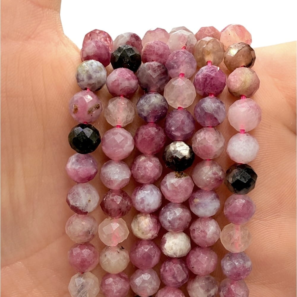 Fasetowane kulki Turmalinu Mix Kolorów o średnicy ok. 6 mm – naturalne, wielobarwne odcienie nadają biżuterii żywy, energetyczny i unikalny charakter. Idealne do nowoczesnych i wyrazistych projektów oraz biżuterii minimalistycznej z akcentem koloru.