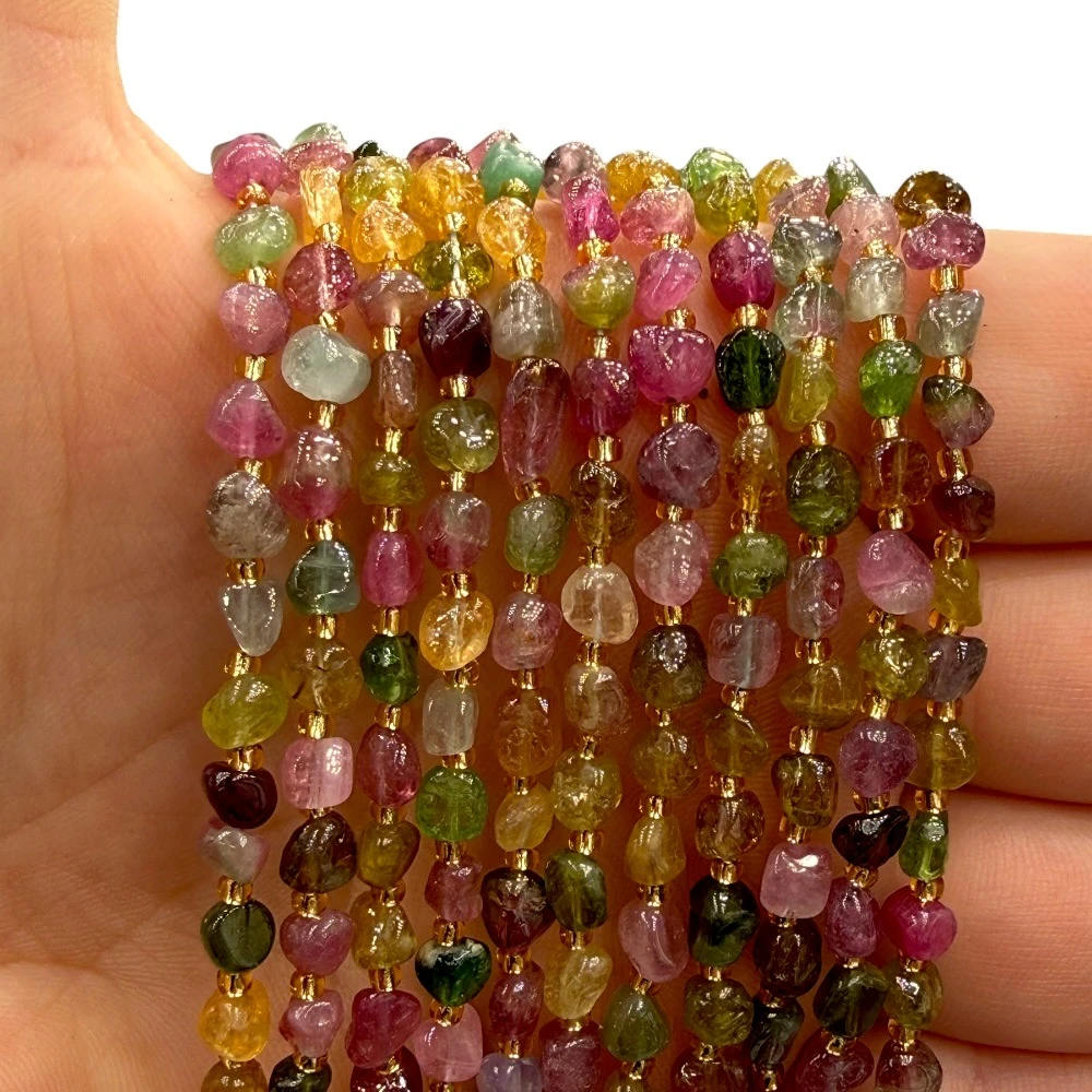 Gładkie bryłki z turmalinu w miksie kolorów, o wymiarach ok. 5x5 mm – barwna i energetyczna baza do unikalnych projektów biżuteryjnych