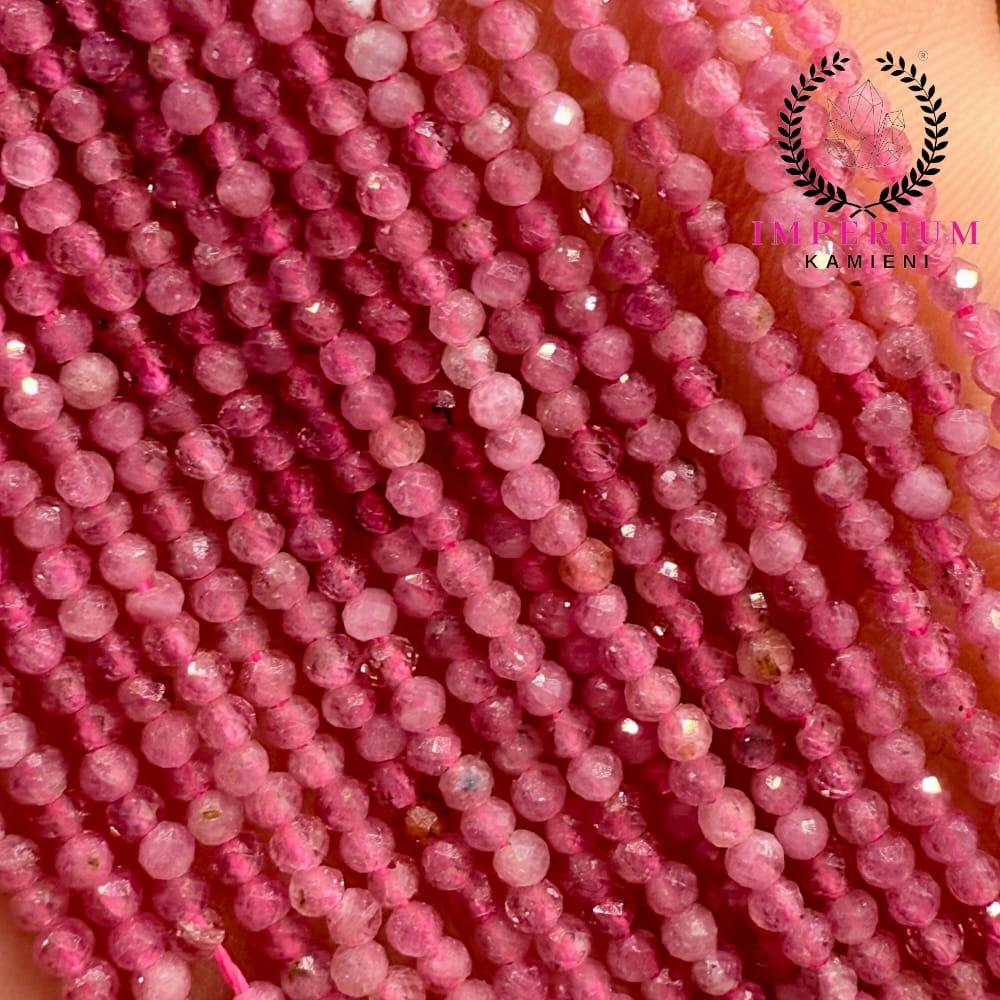 Fasetowane kulki turmalinu różowego o średnicy ok. 2 mm – kamień o delikatnej, różowo-malinowej barwie z naturalnymi przejściami tonalnymi. Szlif fasetowy podkreśla subtelny połysk minerału i nadaje mikrokoralikom elegancki, biżuteryjny charakter. Idealny do precyzyjnej, luksusowej biżuterii handmade oraz delikatnych projektów premium.