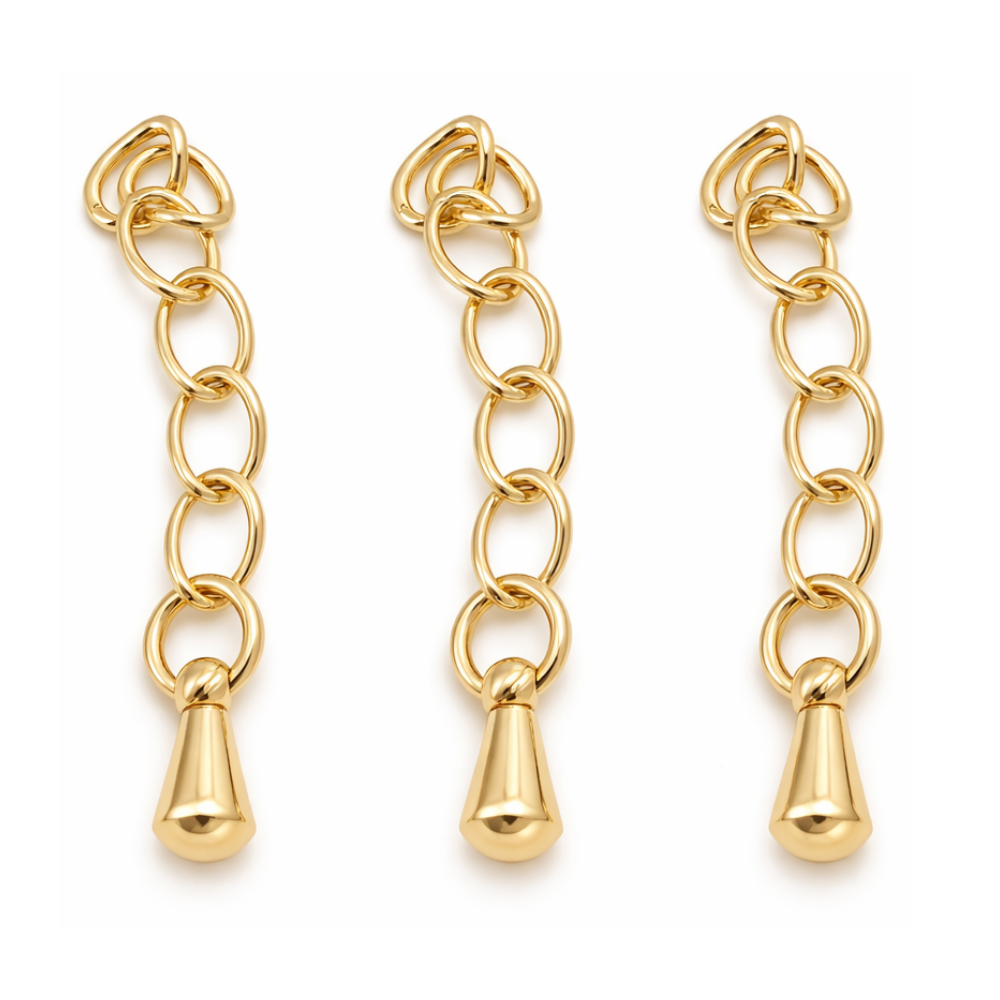 Zakończenia naszyjników wykonane z wysokogatunkowej stali nierdzewnej pokrytej powłoką PVD w kolorze złotym to funkcjonalne komponenty montażowe przeznaczone do trwałego i eleganckiego wykończenia biżuterii. Umożliwiają stabilne zamocowanie linek, żyłek lub sznurków jubilerskich oraz wygodne połączenie z zapięciem, nadając całości uporządkowany i spójny wygląd.