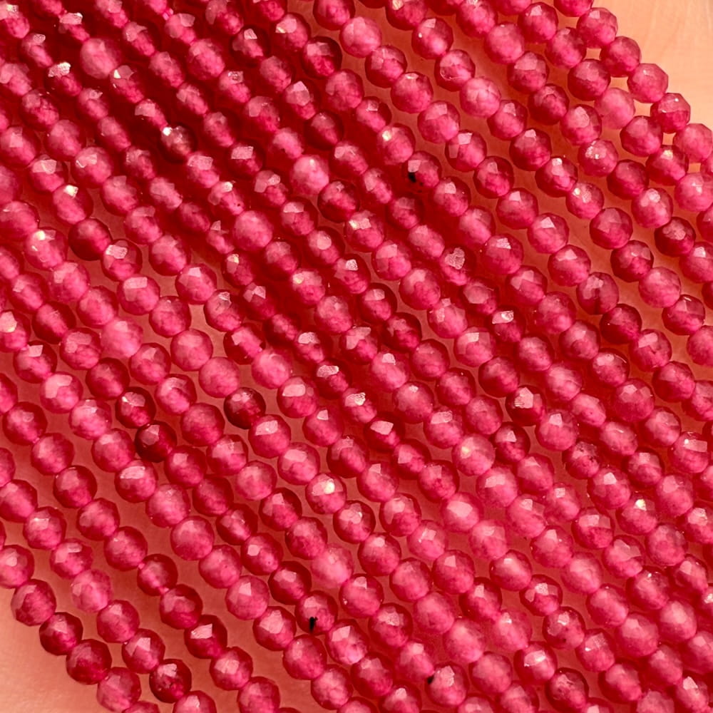 Fasetowane kulki jadeitu różowego o średnicy ok. 2 mm — delikatny, pastelowy odcień różu z subtelnymi przejściami tonalnymi nadaje biżuterii romantyczny i elegancki charakter. Idealne do mikrobiżuterii premium oraz precyzyjnych projektów handmade.